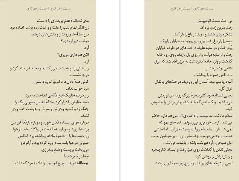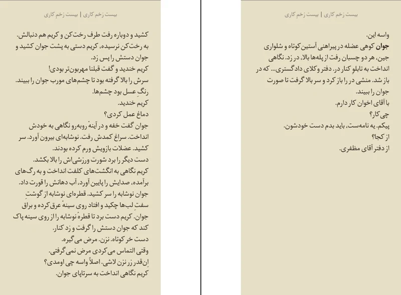 در بخشی از متن کتاب بیست زخم کاری می خوانیم: