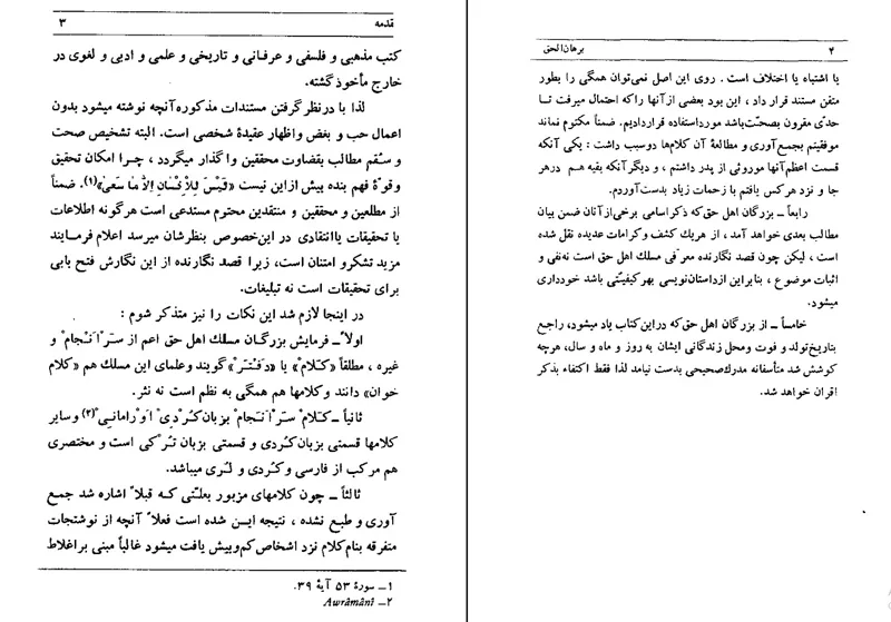 محصول کتاب برهان الحق از نور علی الهی در سایت فایل خونه برای دانلود آماده شده است. بسم الله الرحمن الرحيم – بعد از حمد و ثنای باری تعالی و درود بر انبياء ومقربين خدا غرض از تحریر این تسطیر آنکه چون این حقیر نور على الهى فرزند مرحوم حاج نعمت الله راجع به مسلك اهل حق در نتیجه مطالعات ممتده و تحقیقات ممکنه اطلاعاتی کسب نموده روی این اصل بنابر تمایل جمعی از دوستان با اینکه بضاعت علمی ندارم و اطلاعاتم محدود است لذا بقدر فهم خود شمه ای از رئوس مطالب وحاق واقع مسلك نام برده تحت فصولی چند اختصاراً معروض می دارد امید است خوانندگان محترم از سهو و خطا و نارسائی انشاء غمض عين فرمایند هر کس بقدر فهمش فهمیده مدعا را اما اینکه عرض شد حاق واقع برای احتراز از مفهوم مخالف آن است زیرا از آن جائی که جماعت اهل حق در امور شرعی تابع شریعت اسلام هستند غیر از قرآن و سایر کتب مذهبی اسلامی کتاب مدونة دیگری که بمنظور ضبط تاریخ و حفظ سایر دستورات مسلکی بطبع رسیده باشد.