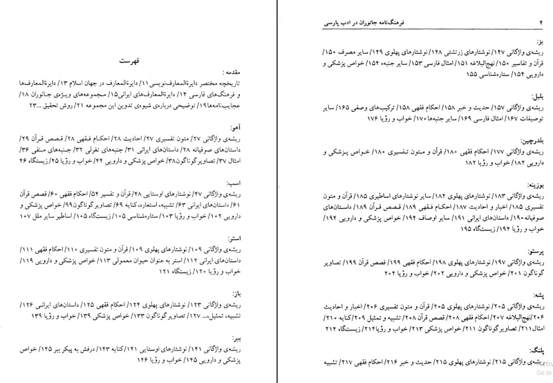 در بخشی از متن کتاب فرهنگ نامه جانوران در ادب پارسی می خوانیم: