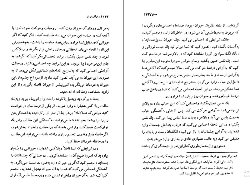 محصول کتاب پرواز روح از کایت هاراری در سایت فایل خونه برای دانلود آماده شده است. رسیدن به احساس خروج روح از بدن به این معنا نیست که شما جسم خودتان را رها کنید و از حقایق زندگی روزانه به دور بمانید. برعکس این تجربه به شما این امکان و قدرت را میدهد که خیلی بهتر بتواند بین جسم و روح خویش به برقراری ارتباطی سازنده و آموزنده نایل آیید و حقایق محیطی را بهتر بشناسید در واقع هر قدر که شما از لحاظ جسمی و روحی در وضعیت ریلاکس تر و آرام تری قرار بگیرید، سرعت درك و عمق احساس خروج روح از جسم برای شما بهتر و عملی تر می گردد. اولین گام را به صورتی انتخاب می کنیم که شما درك فيزيولوژيك خیلی بهتر و دقیق تری را نسبت به جسمتان پیدا کنید. با گذشت روزهای هفته به تدریج شما این امکان را پیدا می کنید که توجهتان را از برون به درونتان معطوف و منعکس سازید.