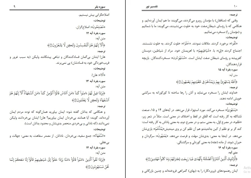در بخشی از متن کتاب تفسیر نور می خوانیم: