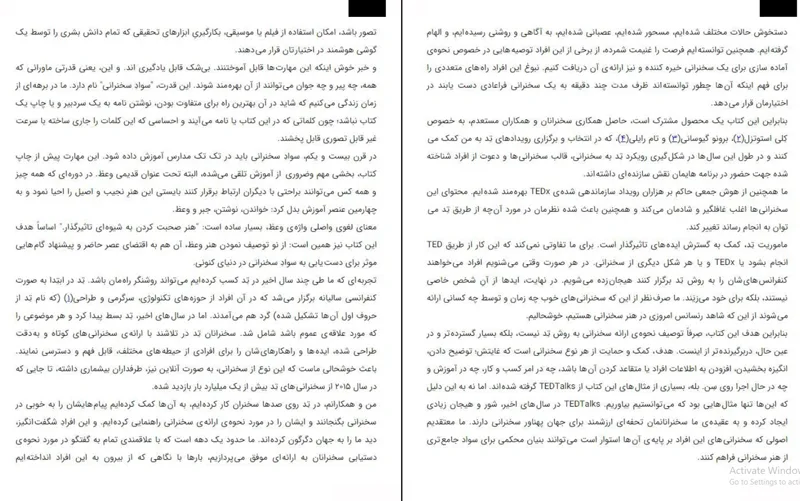در بخشی از متن کتاب اصول سخنرانی و فن بیان به روش ted می خوانیم: