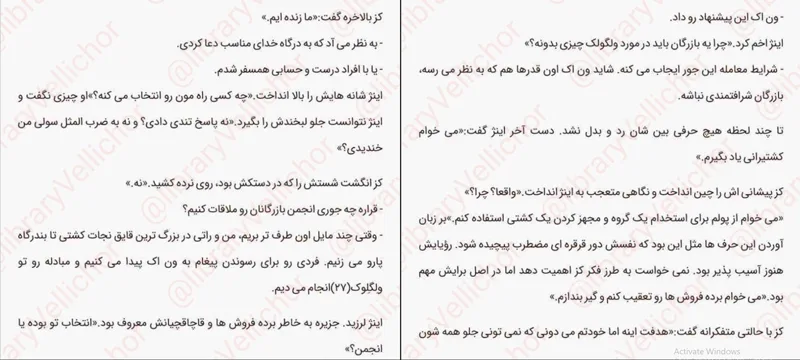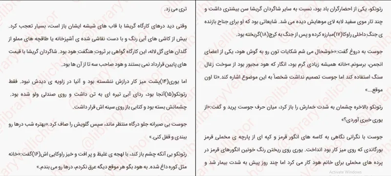 تجمع کرده بودند به ده نفرم با جوست :پرسید چرا همه ی نگهبان ها اونجان؟» تعداد نگهبان هایی که در قایق خانه ده یکی از اعضای انجمن نیز آنجا بود، به همراه بازرگانی که جوست نمی شنا خت؛ هر دو هم لباس سیاه بازرگانان را به تن داشتند. جوست روی پنجه ی پاهایش ایستاد و آن ها را دید که با سروان استاد واچ حرف می زنند. امیدوار بود که اثری از گل باغ روی لباسش نمانده باشد.